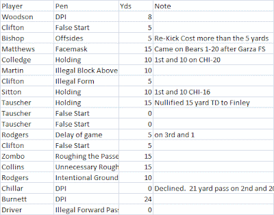 There are 14 of 19 penalties on that list committed by guys with 5 or more years of experience. (Chillar, Clifton, Collins, Driver, Martin, Rodgers, Tauscher, Woodson). Hard to fault youth on most of those. Especially the hold on Tauscher that wound up costing a TD.