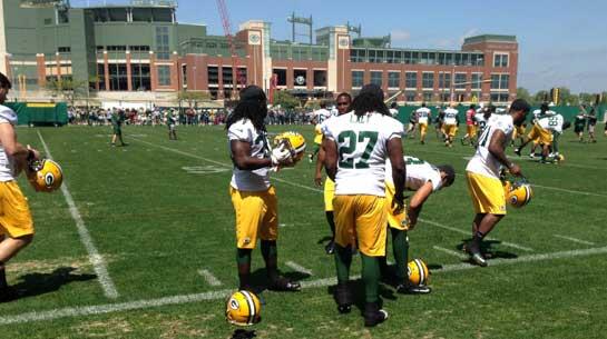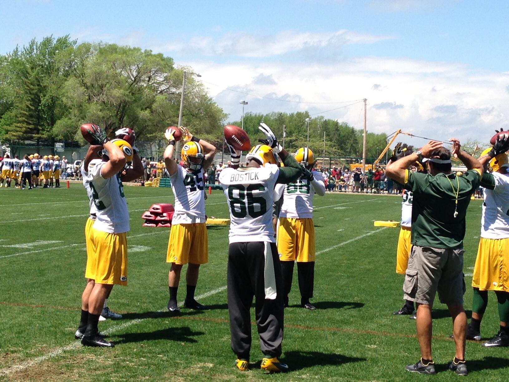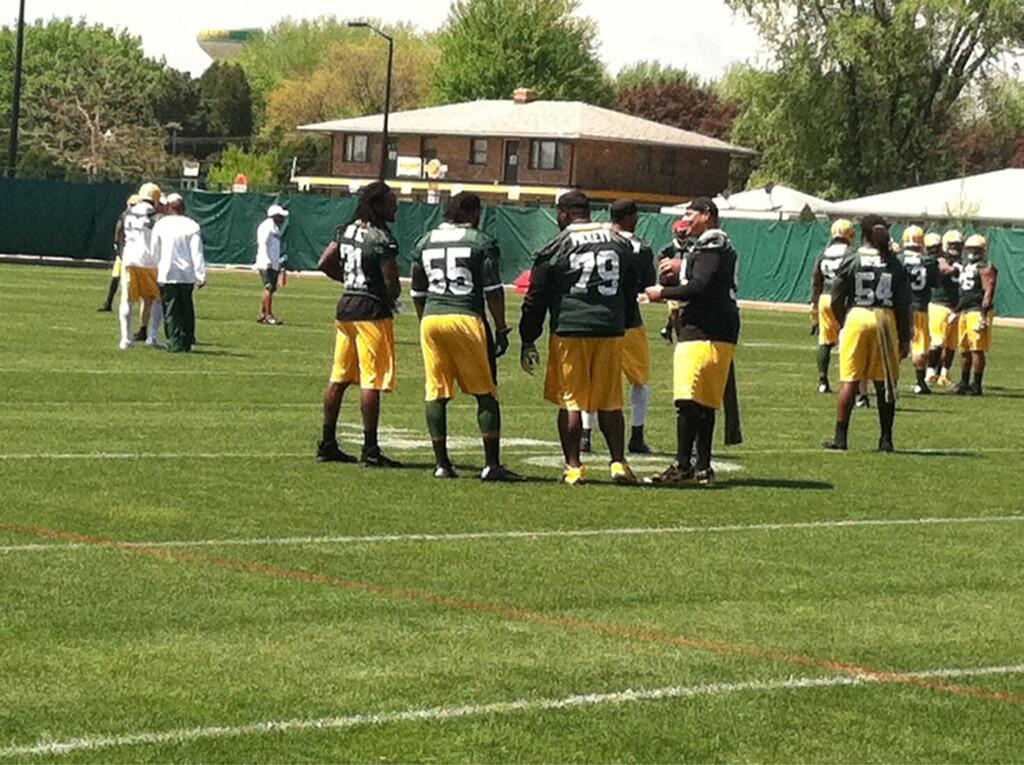 Ty Dunne thinks this is evidence of Bishop being cautious. The leg wraps? Standing next to Pickett? No helmet group not working out today? Why is House not working out, nor Moses? Dammit, I already mad at the 2013 season.