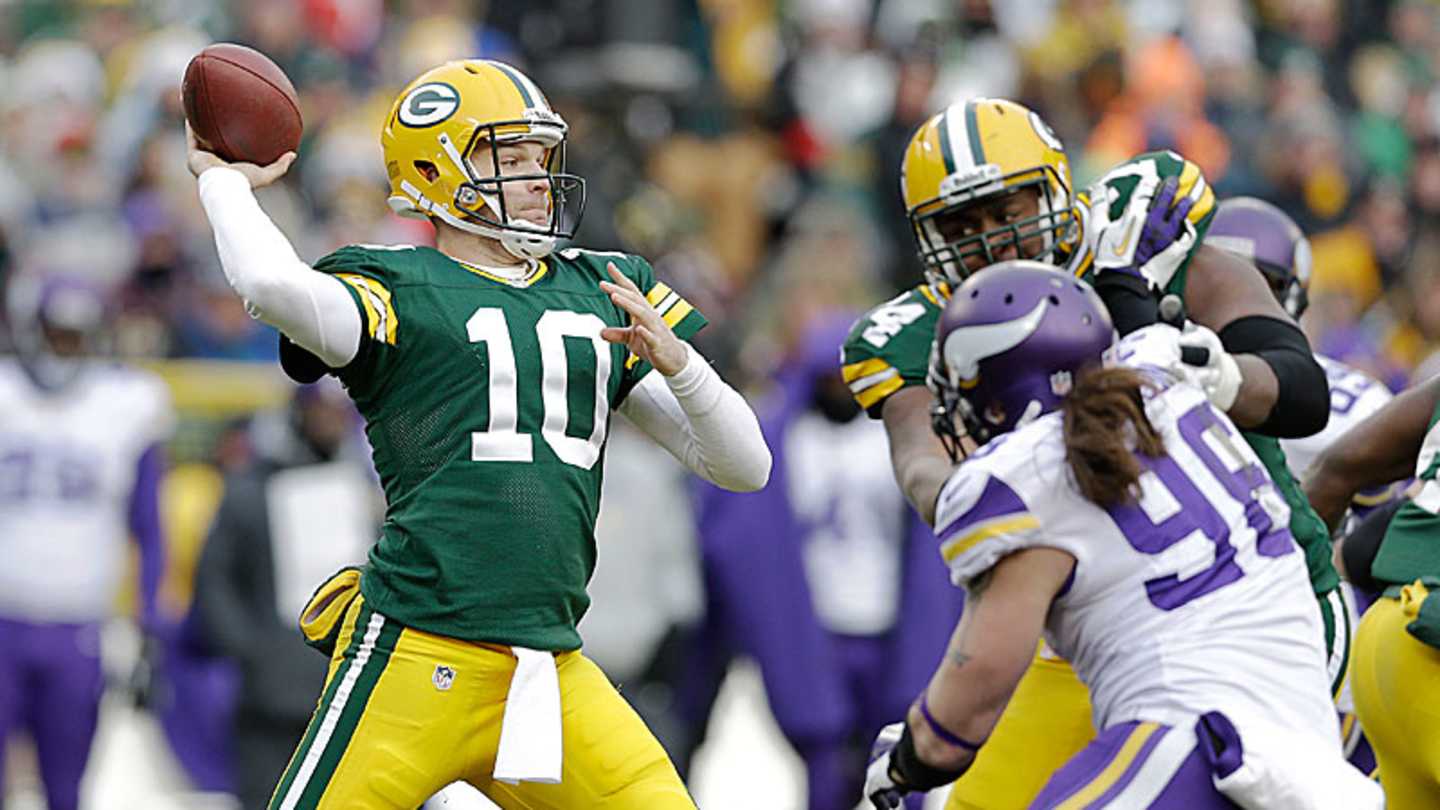 Peering at the action underneath a green hooded jacket, behind a caterpillar-thick Movember mustache, Rodgers watched Flynn put together a comeback from down 23-7 to tie the Vikings in overtime, a rare NFL draw."