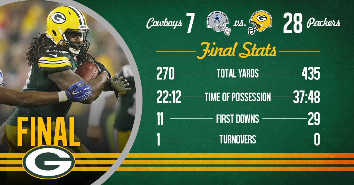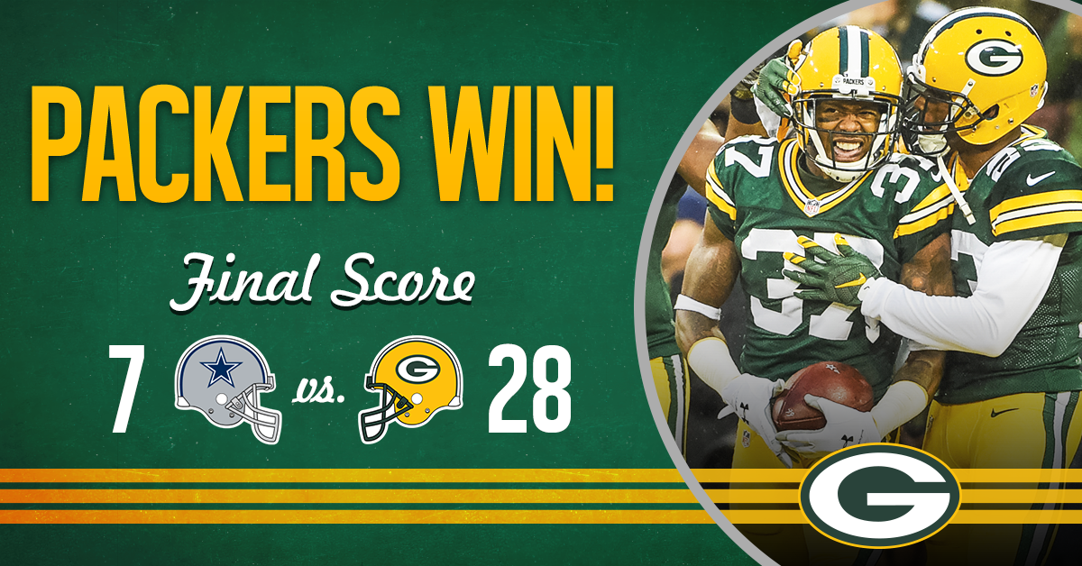 McCarthy: Excellent team victory today. Very proud of our team. We beat a good football team in the Dallas Cowboys. #DALvsGB