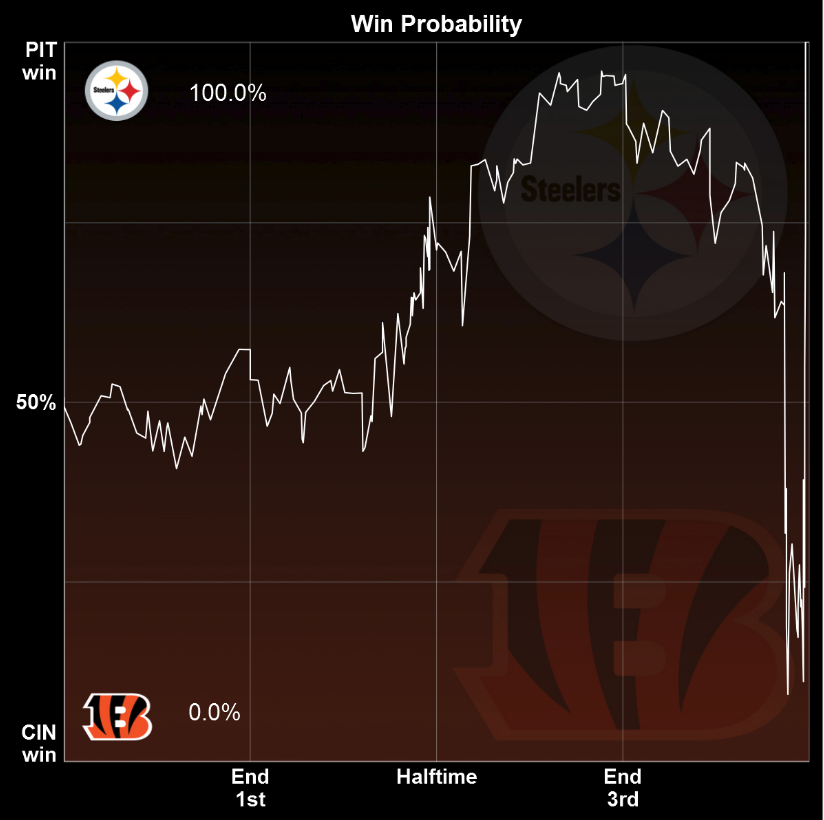 Steelers were in the Bengals heads. Bengals had the game wrapped up but lost their cool.Bud Adams told me the franchise he admired the most was the Kansas City Chiefs. Then he asked for more hookers and blow.