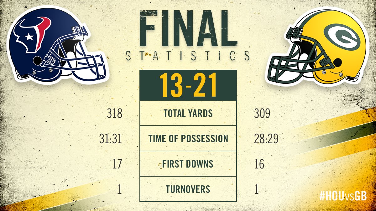 Not a clean game. Packer's Offense was good early and late and not much in between. Defense allowed a lot or running room out the outside and on 3rd downs.