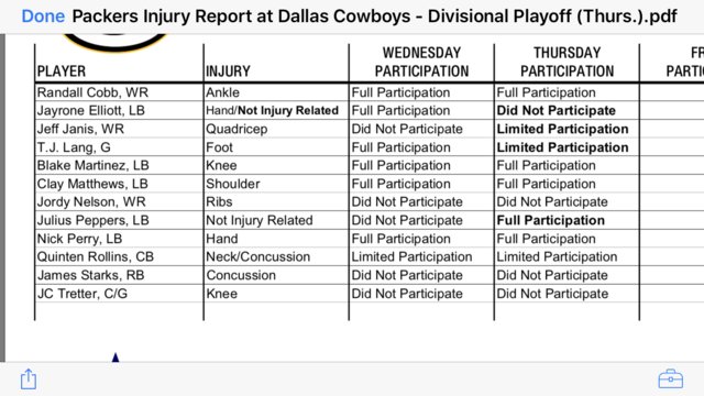 Jordy Nelson (ribs) did not attend practice again on Thursday. Others out: James Starks, JC Tretter, Jayrone Elliott.I can't run no more