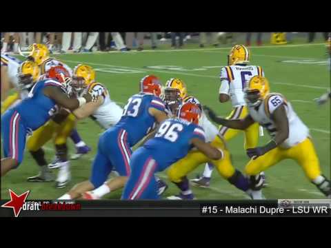 Malachi Dupre (Mal-uh-kye Doo-pree) was not voted first or second-team all-conference during his career, and has not ranked among the more prolific receivers in the country due to the Tigers' inconsistent quarterback play. Dupre actually led LSU in receptions and receiving yards each of the past two seasons, even though his statistics aren't extraordinary (43-698, six TDs in 2015; 41-593, three TDs in 2016). The former five-star prospect and high school state champion triple, long, and high-jumper from New Orleans was voted to the SEC's All-Freshman team in 2014, however, by averaging 22.7 yards per reception (14-318, five TDs).