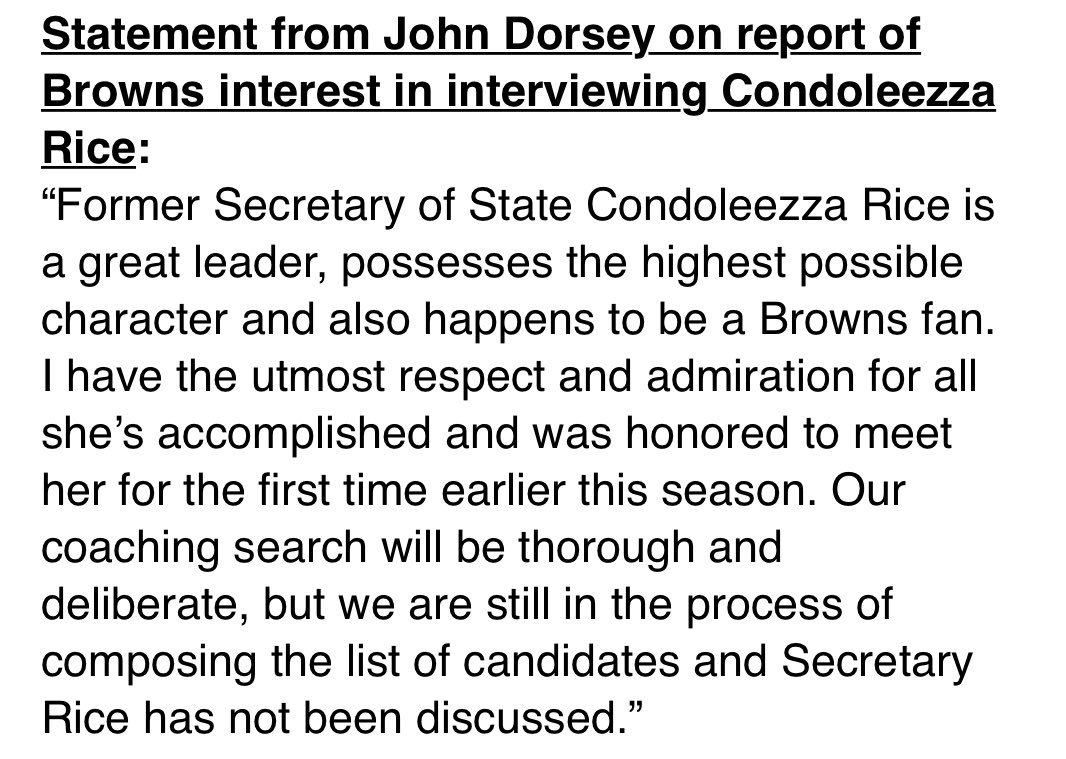 The Browns would like to interview former Secretary of State Condoleezza Rice for their head-coaching job, a league source tells ESPN.I can't run no more