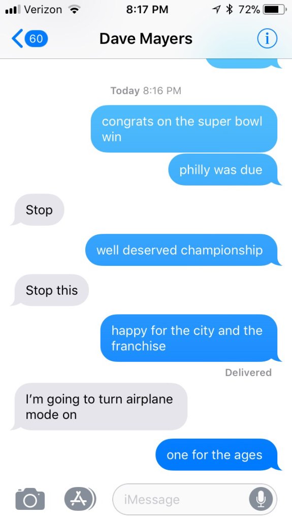 • Friend trolling Eagle fan friend: