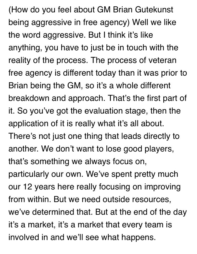 The problem is that most of this sounds like soundbites, not a plan. But I also don't expect him to reveal the plan at the Combine. So my concern stays the same, he isn't obviously invested in what makes a defense consistently good, he is interested in changing the mission statement, apparently.