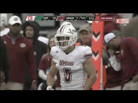 First Take: Obviously the kid is fast, I mean fast on a whole other level of speed. Not just fast but his feet are extremely quick. When they talk about a scat back this is who they are referring to. He has really good hands, catches the ball well in traffic. His footwork is almost violent. Isabella is a good football player that will find a niche with an NFL team, cough cough New England. He fits the mold of the Wes Welkker types, and Julian Edlemanns of the NFL. If he gets in the right offense he could catch 70 passes a season. He would be an open field nightmare in the NFL. Issues, first and foremost he is tiny. He will have to play slot and only slot unless team put him out on the numbers to run jailbreak screen to him. He will get engulfed by the bigger defensive backs with long arms. He won't be much use for the long ball unless he outruns the defensive back, his height alone will be to great of a mismatch for him. Teams won't look past his speed, but he will get stereotyped because of playing at a small school, and his size. Who knows exactly where he will fall with the draft and the strong class of receivers, but he could easily be a third round pick. I would rather have Isabella in the third round than Marquise Brown in the 1st or 2nd round.