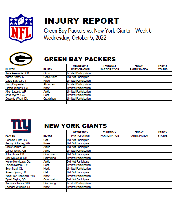 Last meeting: December 1, 2019. Packers defeated Giants 31-13. Aaron Rodgers threw for 243 yards and 4 TD's. Daniel Jones had 240 yards with 1 TD and 3 INT's.